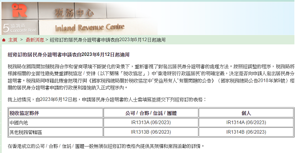 在國際間加強稅務(wù)合作和不斷變化的營商環(huán)境的背景下,香港特別行政區(qū)稅務(wù)局(以下簡稱“稅務(wù)局”)重新審視了發(fā)放居民身分證明書的處理方法,并宣布自2023年6月12日起,稅務(wù)局將根據(jù)相關(guān)的全面性避免雙重課稅協(xié)定/安排(以下簡稱“稅收協(xié)定”)中“香港特別行政區(qū)居民”(以下簡稱“香港居民”)的明確定義,決定是否可以向申請人出具香港居民身分證明書。