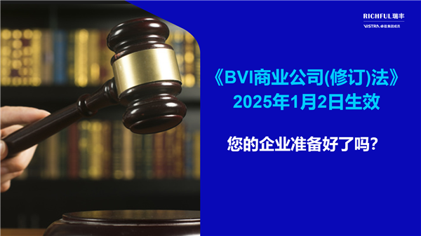 對于在BVI設(shè)有業(yè)務(wù)或計(jì)劃在該地區(qū)設(shè)立公司的企業(yè)來說,了解并準(zhǔn)備應(yīng)對這些變化至關(guān)重要。為了確保順利過渡到新法律框架,BVI的監(jiān)管機(jī)構(gòu)可能會提供詳細(xì)的指導(dǎo)方針和實(shí)施細(xì)節(jié)。RICHFUL瑞豐目前正在密切關(guān)注相關(guān)更新,積極確定提交資料的相關(guān)流程細(xì)節(jié),并將在接下來的幾周和幾個月內(nèi)與您保持持續(xù)溝通,以便于您及時調(diào)整運(yùn)營和合規(guī)策略,確保符合新法律的要求。