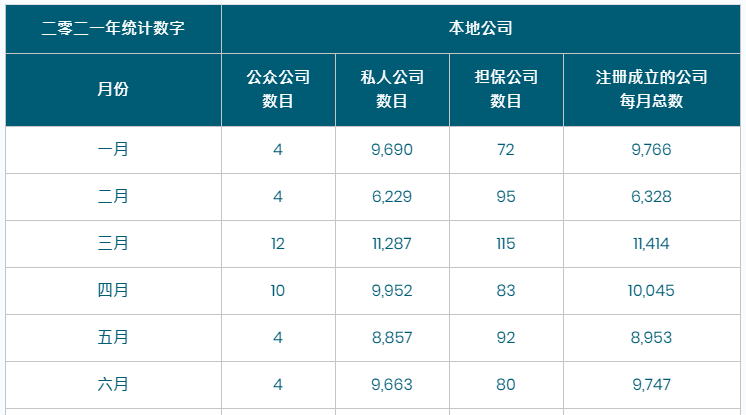 2021年上半年注冊(cè)成立本地公司數(shù)目