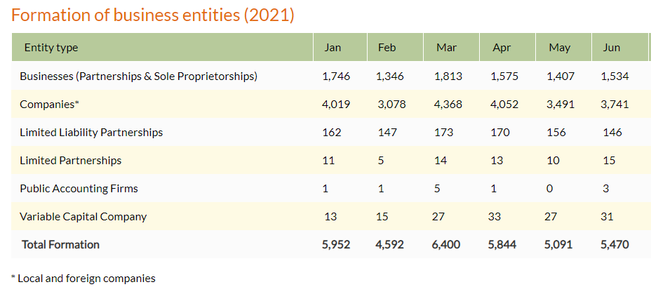 根據(jù)新加坡會(huì)計(jì)與企業(yè)管理局(ACRA) 于2021年7月1日發(fā)布的統(tǒng)計(jì)數(shù)據(jù),新加坡上半年的新設(shè)公司總數(shù)為33,349家。得益于全球經(jīng)濟(jì)復(fù)蘇,新加坡的新設(shè)公司同樣有所回暖,但是無論是現(xiàn)有公司數(shù)量、上半年新增公司數(shù)量,還是6月新增公司數(shù)量,其與香港公司的表現(xiàn)都仍有一定差距。