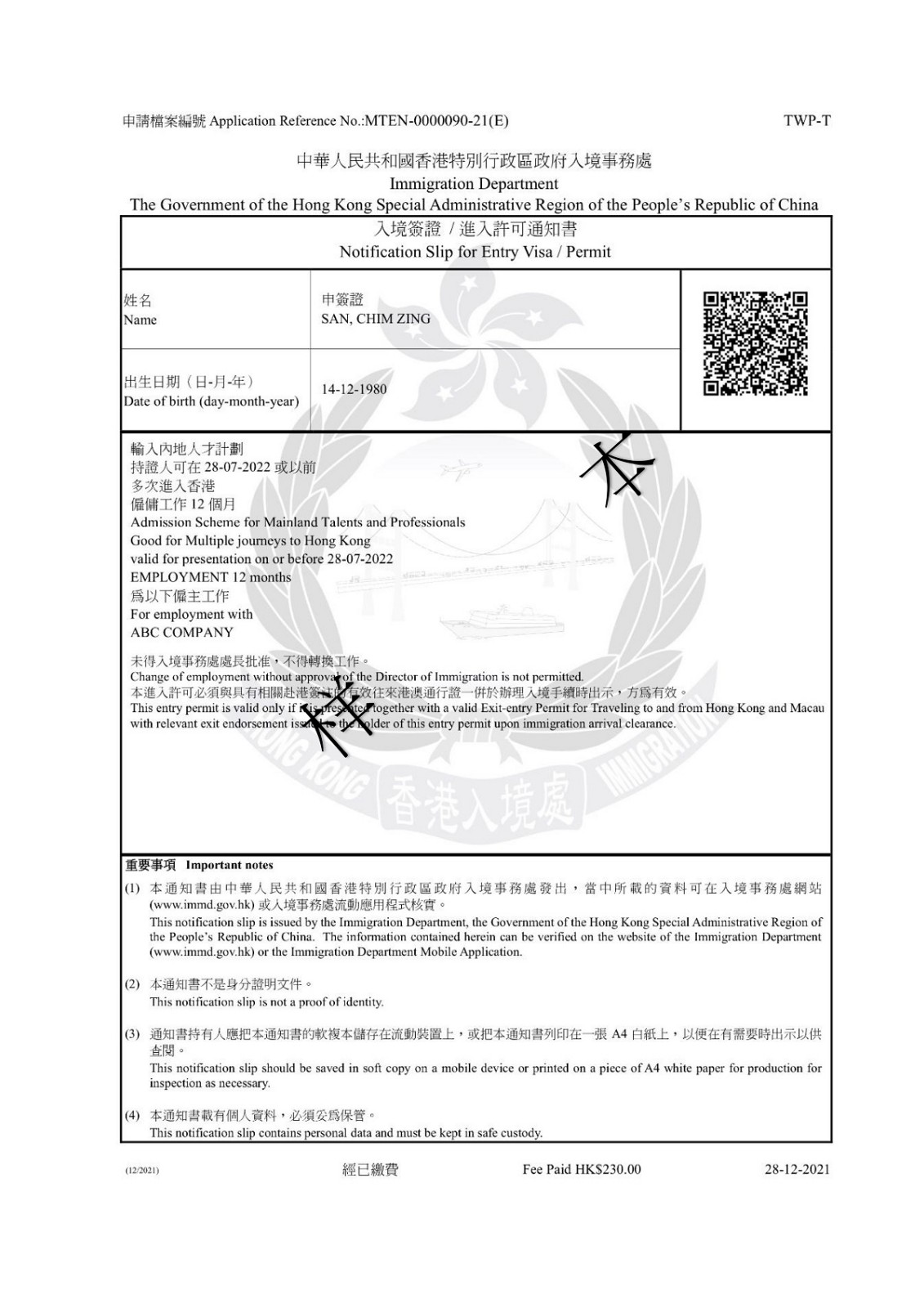 「電子簽證」載有加密二維碼供核實(shí)該證之用。有關(guān)人士(例如「電子簽證」持有人的準(zhǔn)雇主)可使用入境處流動(dòng)應(yīng)用程式掃描該二維碼檢視相關(guān)資料。使用其他相機(jī)裝置或流動(dòng)應(yīng)用程式掃描該二維碼將無法檢視相關(guān)資料。此外,有關(guān)人士亦可在香港政府一站通網(wǎng)站或入境處流動(dòng)應(yīng)用程式(APP)輸入「電子簽證」資料,以核實(shí)該證。