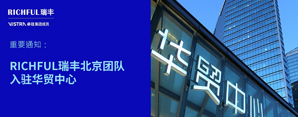 自2025年5月1日起,RICHFUL瑞豐北京團(tuán)隊(duì)入駐朝陽核心商務(wù)區(qū)華貿(mào)中心,以升級(jí)的辦公環(huán)境和資源整合,開啟專業(yè)服務(wù)新里程!