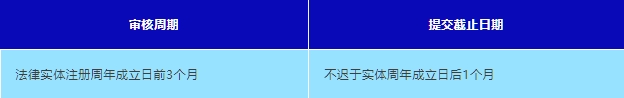 在財務(wù)年度結(jié)束后6個月內(nèi)提交。大型實體和非大型非控股實體必須準(zhǔn)備年度財務(wù)總結(jié),并保存在其注冊辦公室。常見截止日期: